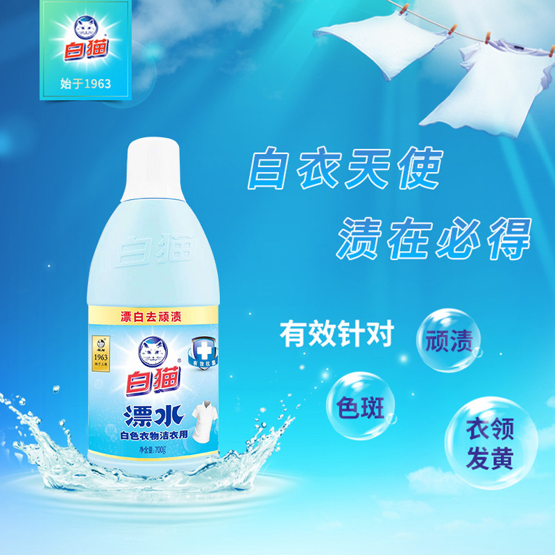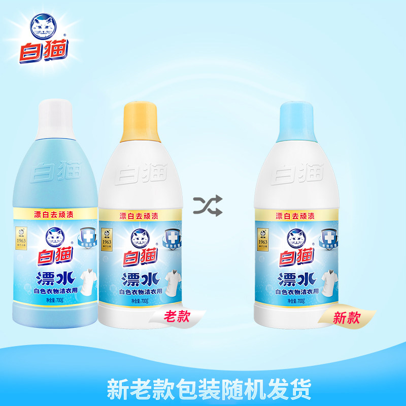 White cat bleach for white clothes to remove stubborn stains and stains bleaching water 700g*20 bottles full box promotion guarantee