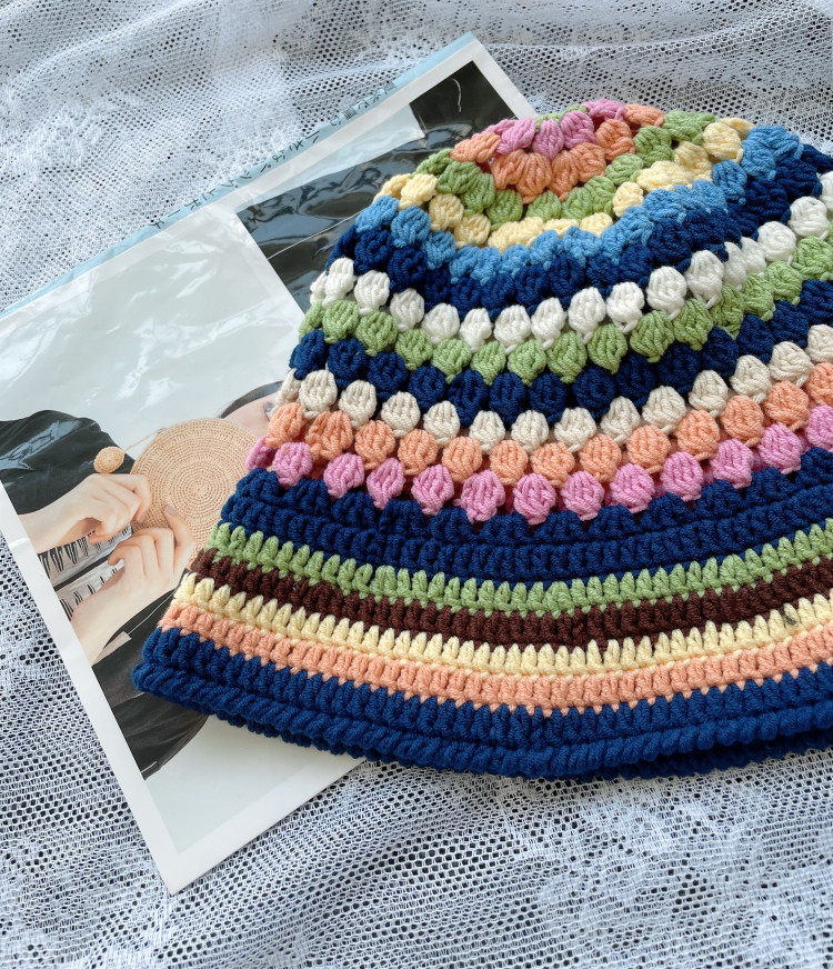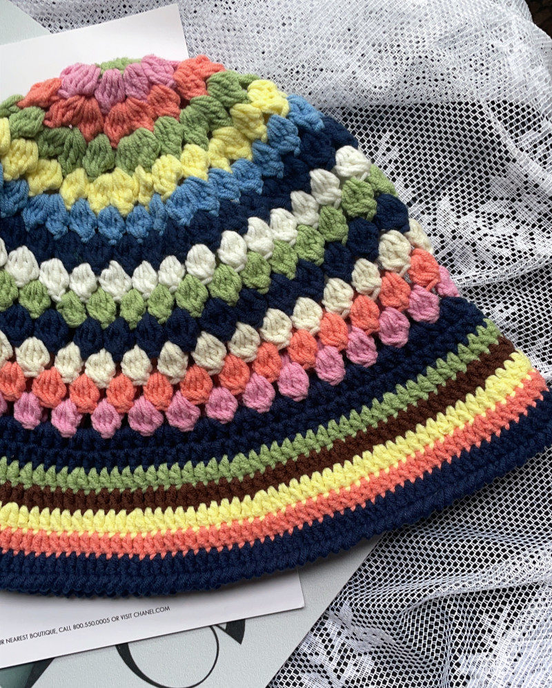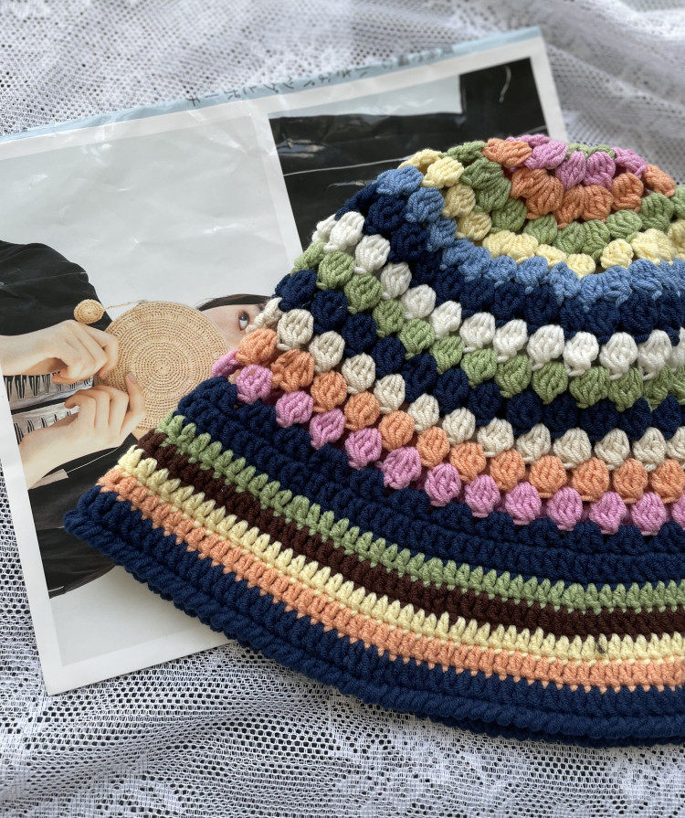 2022 Spring Summer and Autumn Han edition South Korean designer Brand New Rainbow Fisherman Knit Cap Woman-Taobao