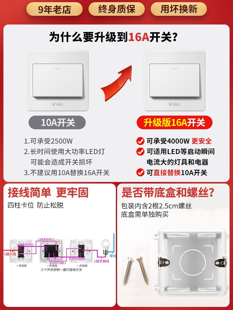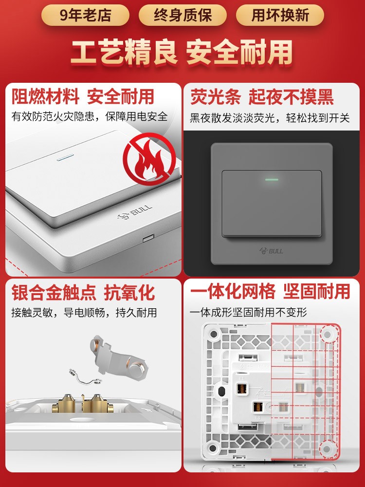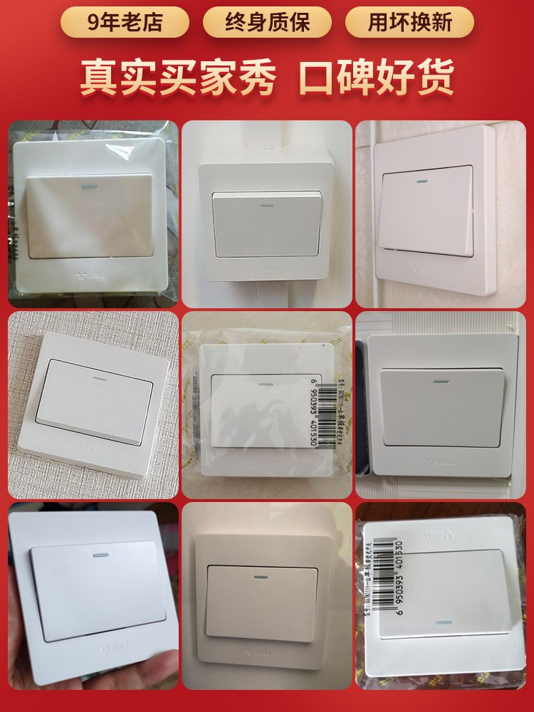 Bull open multi-control midway switch panel 86 Type Three-control One light One single open 3 open two open double open-Taobao