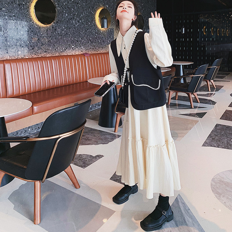 White Dress Dress Fashion Suit Women Autumn Clothing 2023 New Superior Sense Shirt Horse Chia Long Sleeve Skirt two sets-Taobao