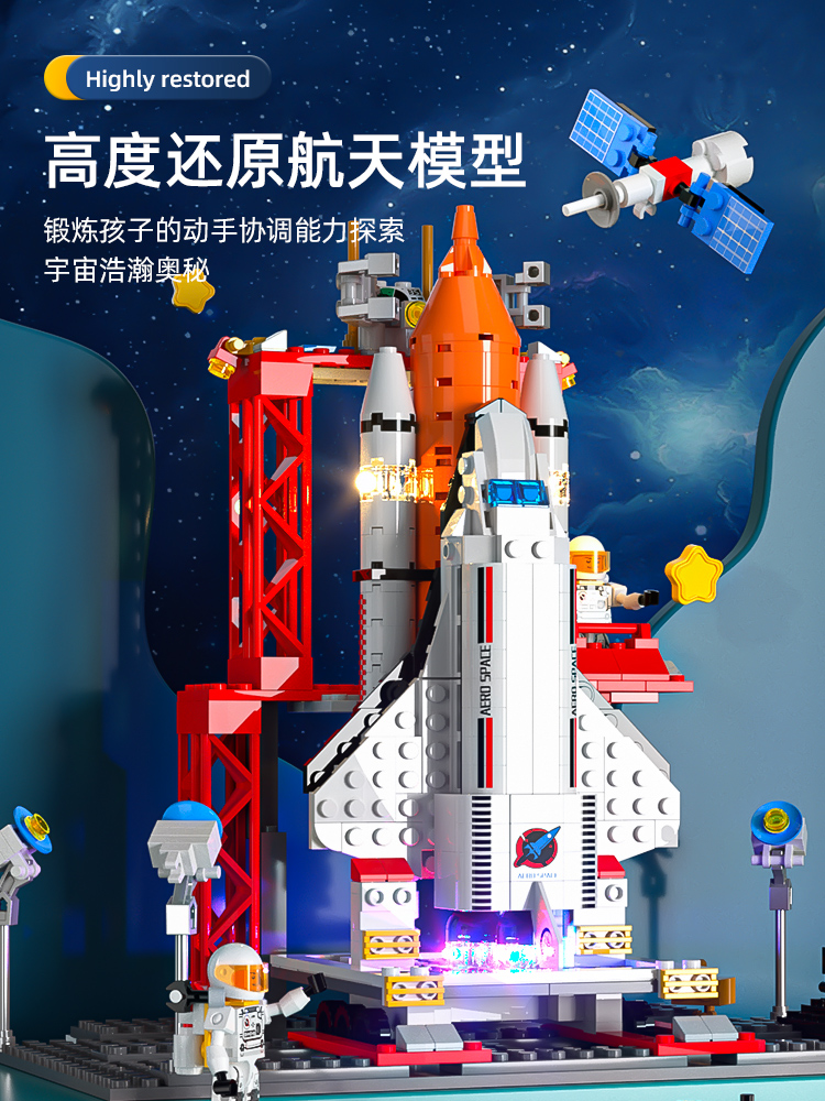 (80% purchase lighting box version) Children's gift Space Shuttle launch pad (limited-quantity special version) (665pcs) Space Shuttle launch pad (lighting version (2 meters decorative lamp)