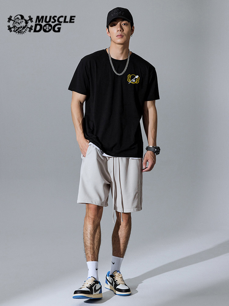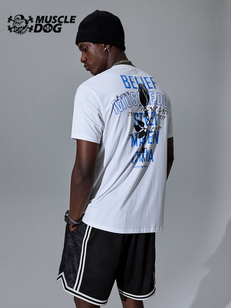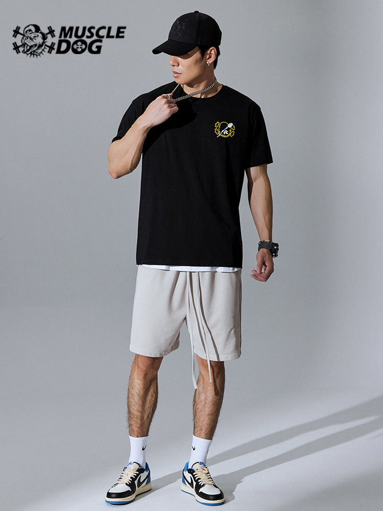 Muscle dog sports and fitness short-sleeved men's tide brand summer new original loose casual T-shirt breathable training clothes