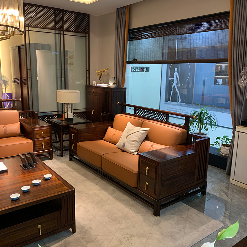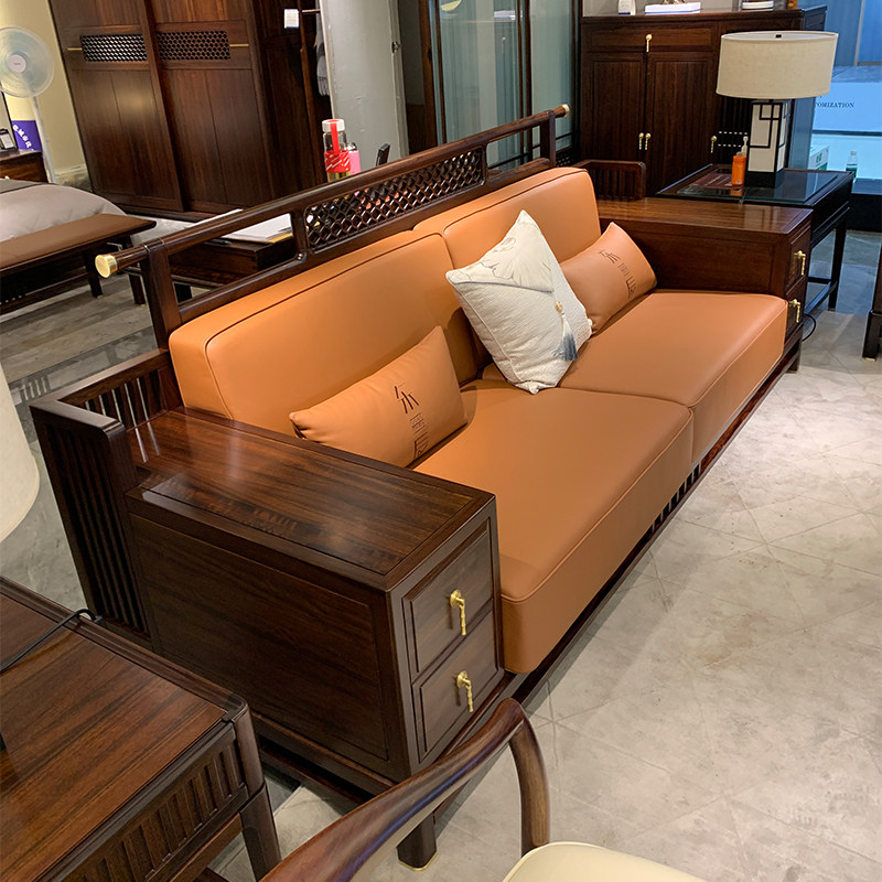 New Chinese style solid wood ebony wood sofa simple modern storage villa living room size household Zen furniture customization