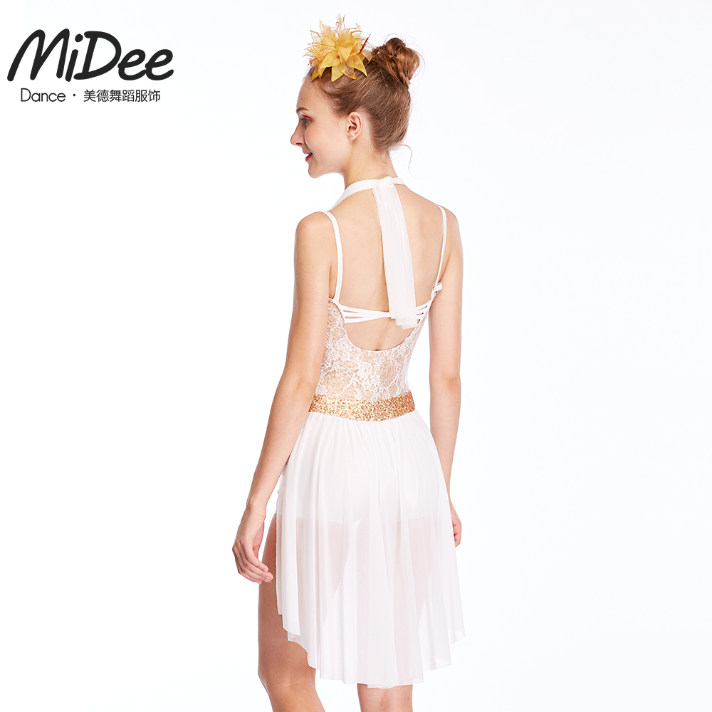 Modern lyrical dance skirt one-piece gold sequin stitching lace irregular high and low skirt ballet competition costume