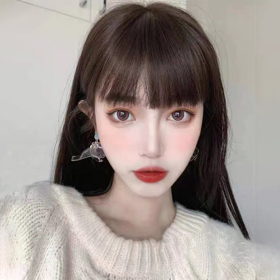 Wig female long hair summer real hair full human hair natural full headgear new air manga bangs long straight hair