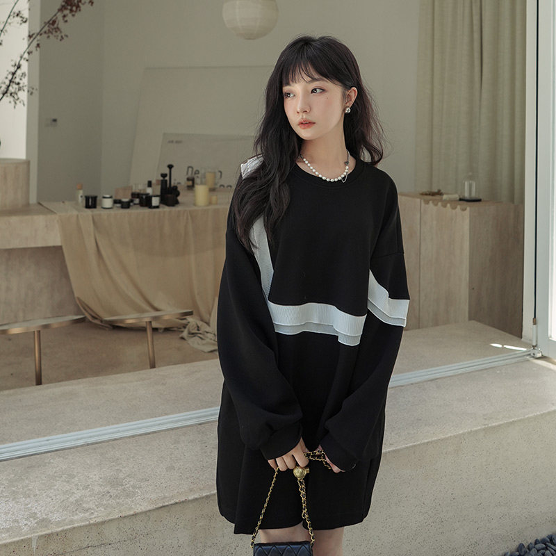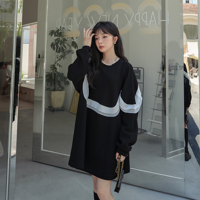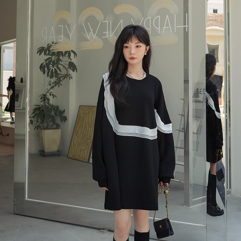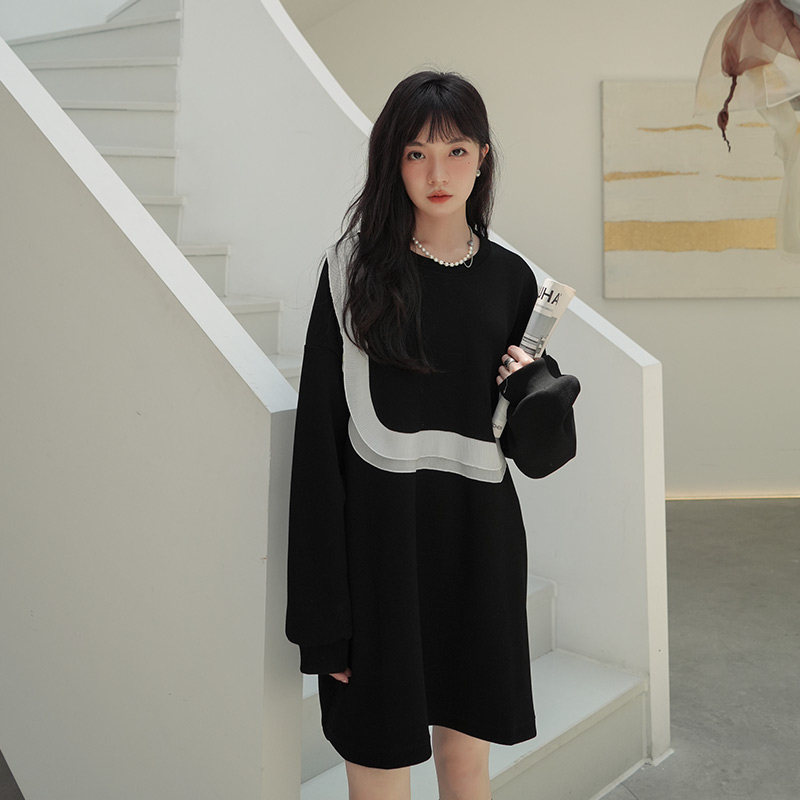 Black small sub-agaric side Side Sleeves Dress Woman Spring Autumn 2023 New Loose Design Sense Slimy Skirt Dress-Taobao