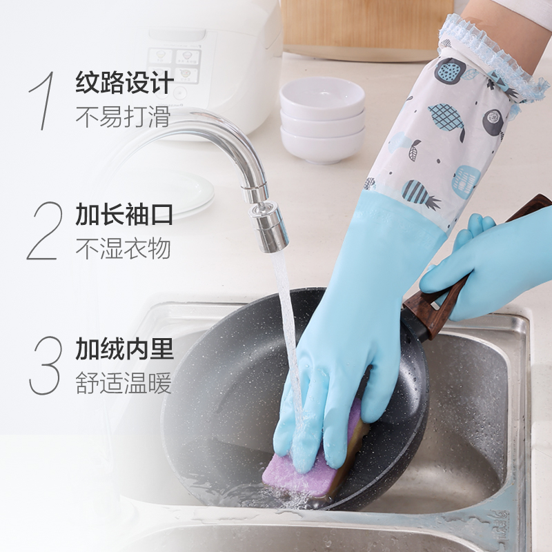 Dafu Rui housework dishwashing gloves velvet women's kitchen thickening winter laundry washing pots and bowls kitchen household 1 pair