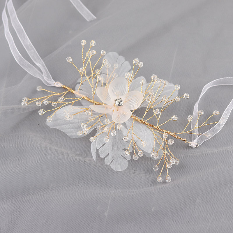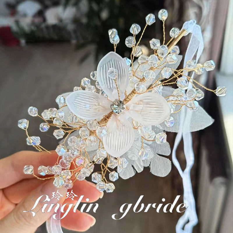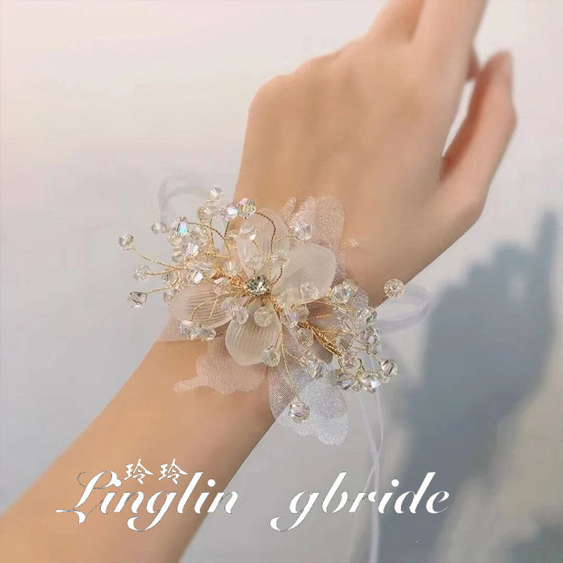 New Bride Ultra Fairy Strings Beads Ribbon Leaf Wrist Flower bridesmaid Sweet Hand Flowers Wedding Wedding Dress Accessories-Taobao