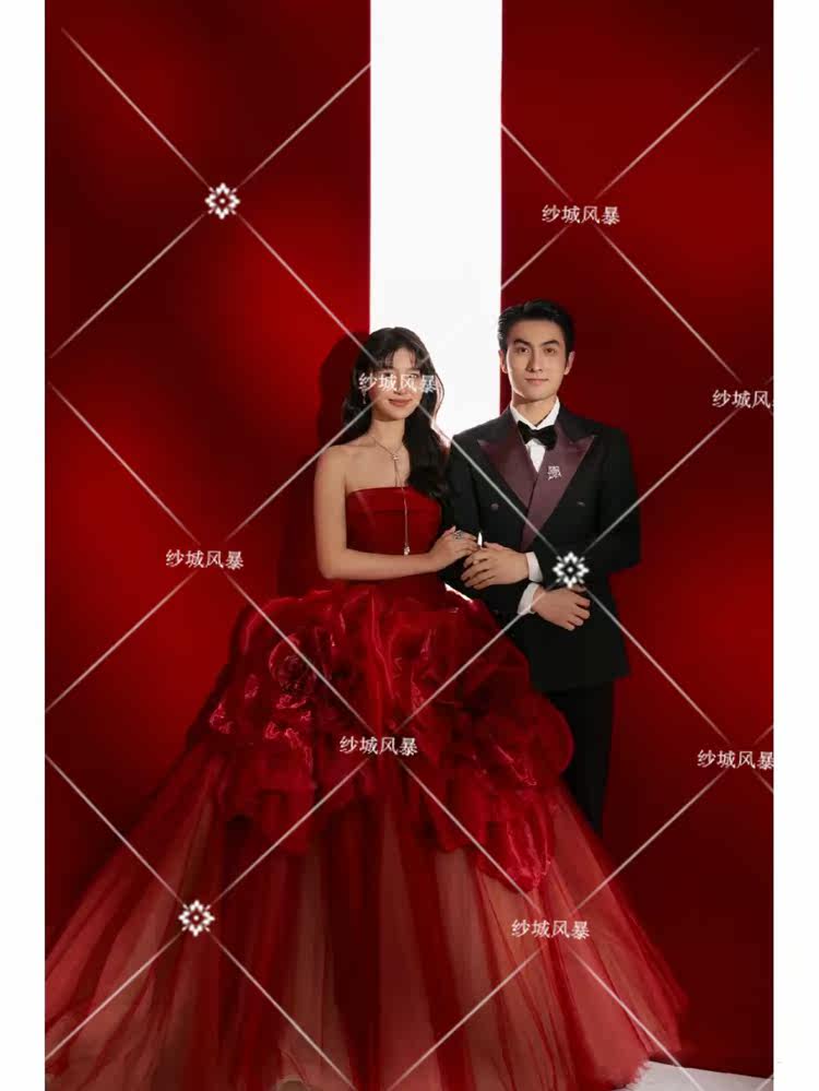 Photo Studio New Exterior Scene Mori Retro Photo Theme Clothing Flower Wedding Photography Interior Photo Red Dress