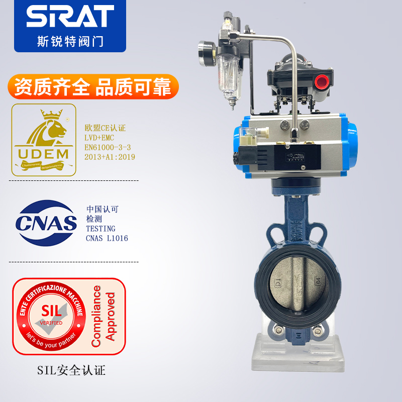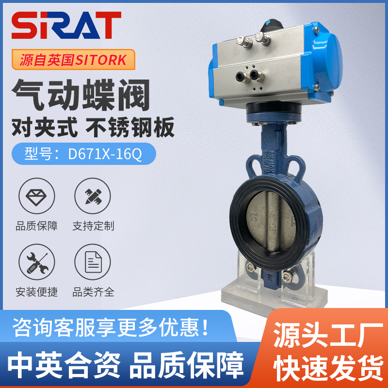 D671X Pneumatic Wafer Butterfly Valve Ductile 304 Stainless Steel Soft Seal AT Adjustment Quick Cut Off Water Valve Switch