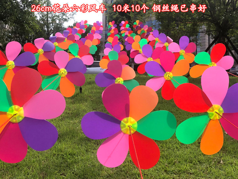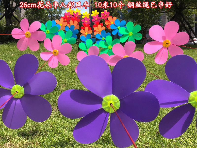 26cm string of colorful windmills, 10 meters, 8 pieces of 26cm single-color flower windmills, 10 meters, 10 pieces of 26cm six-color flower windmills, 10 meters, 10 pieces of red, 10 meters