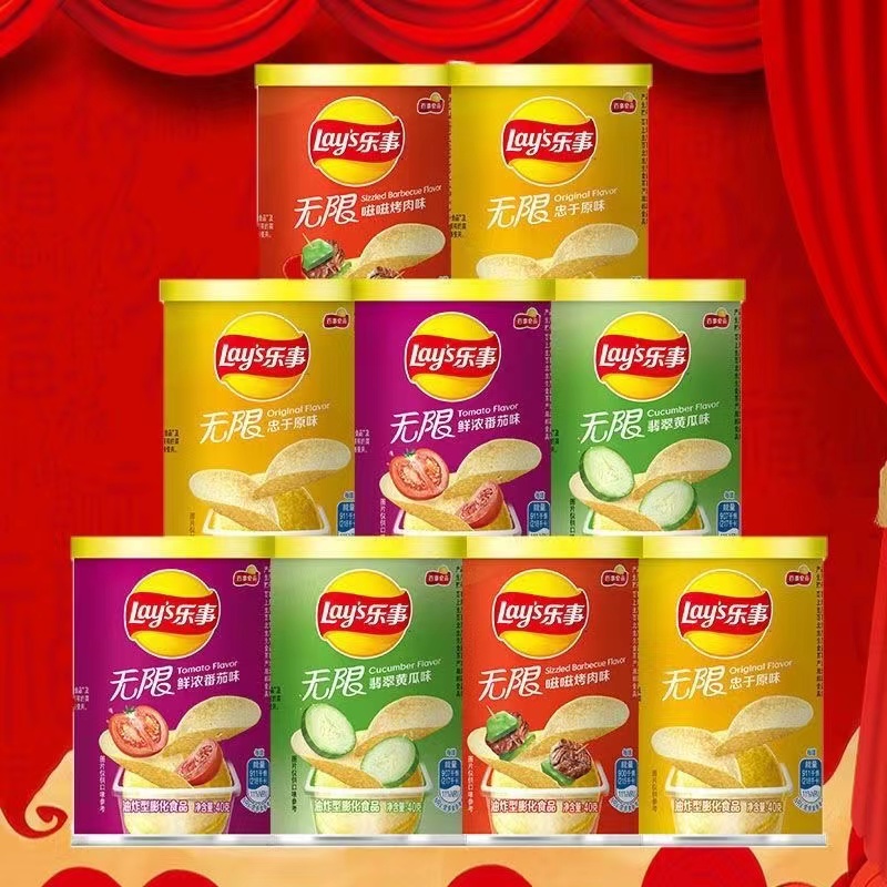 Lay's Unlimited Potato Chips Canned 40g*6 Cans Original Cucumber BBQ Puffed Leisure Snacks Wholesale Wholesale