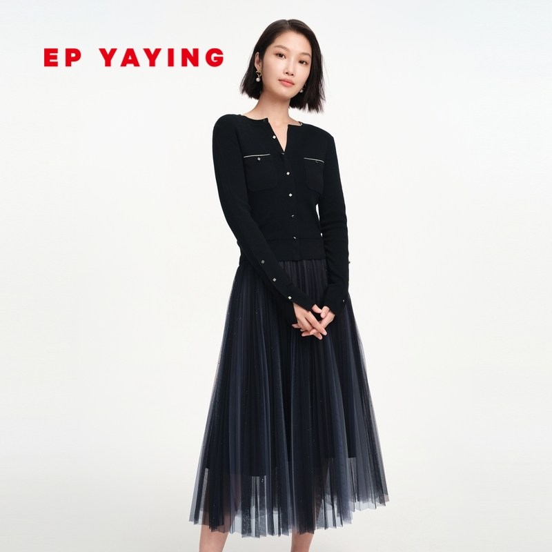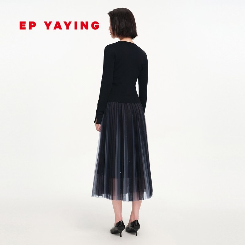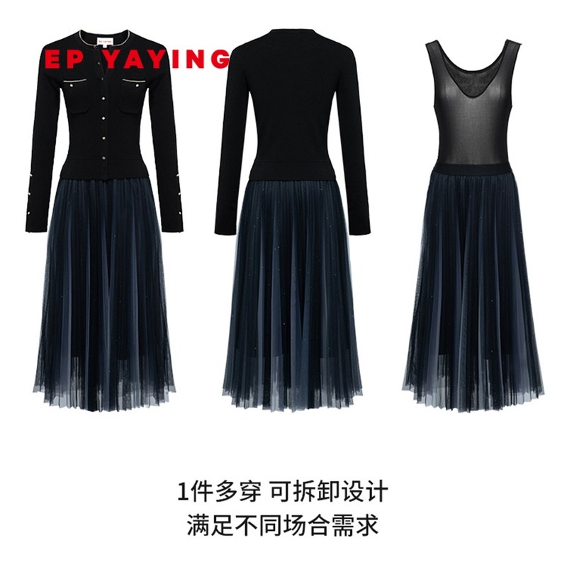 EP Yaying Women's Merino Wool Knitted Two-Piece Slim Dress 2022 Autumn New Model 4632A