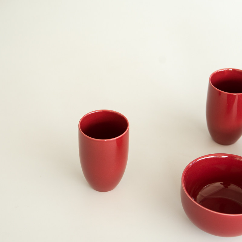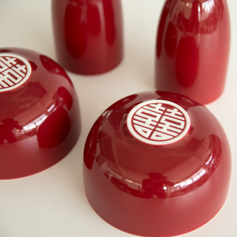 Big red double happiness cup bowl wedding wedding room layout high temperature non-toxic hard fine porcelain water cup rice bowl