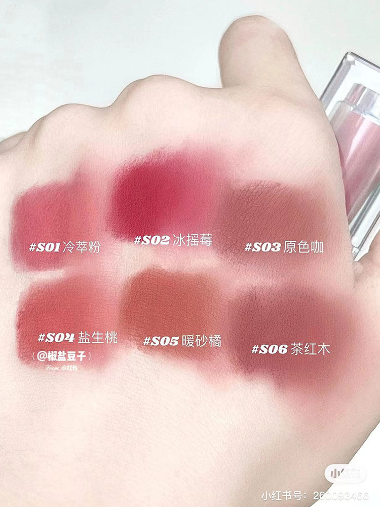 intoyou new space mud red strawberry bear s03 matte mirror lip glaze s06 tea red wood appears white lip mud