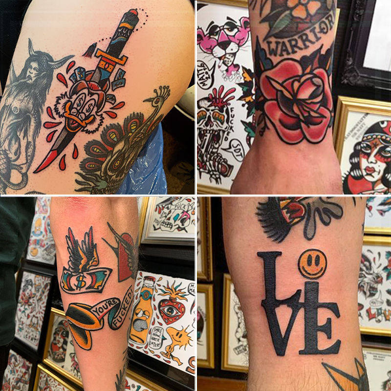Cool and cute oldschool splicing flower arm tattooed sticker waterproof male and female persistent emulation inwind dark black system-Taobao