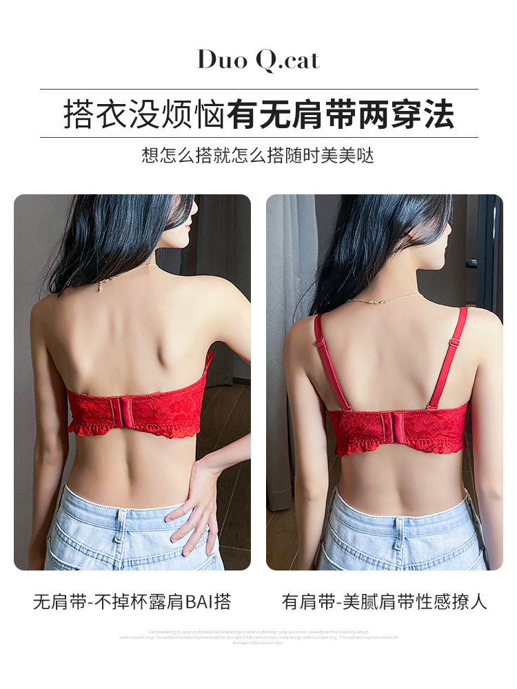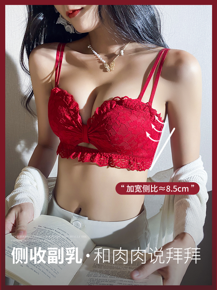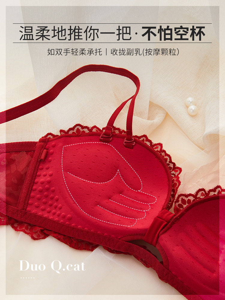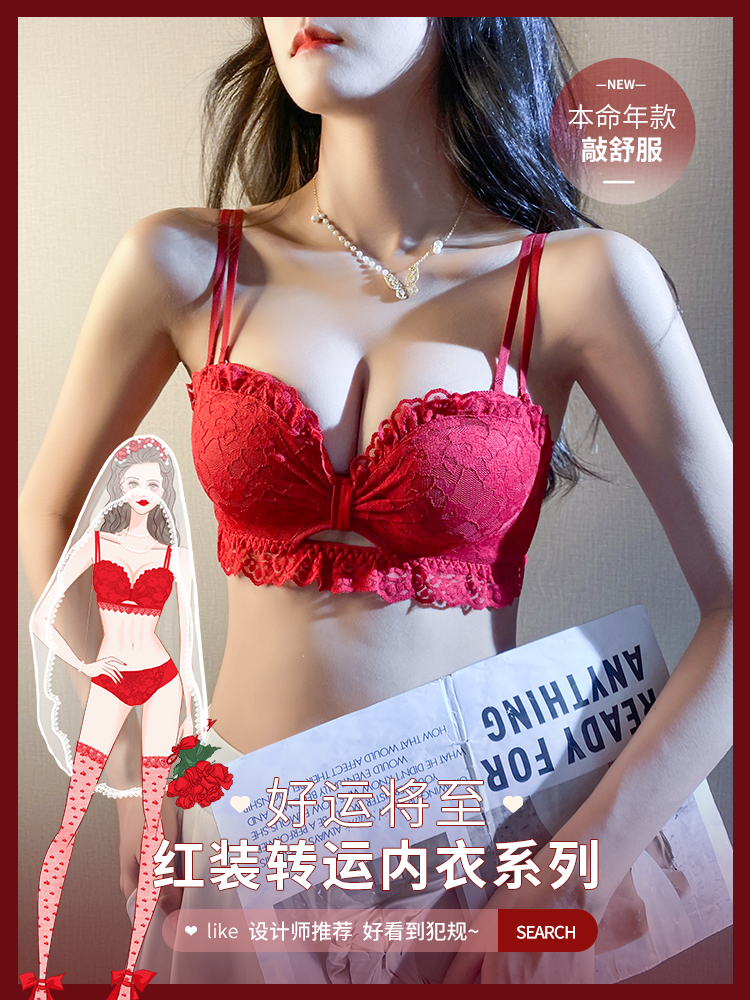 Rabbit female red full set of underwear panties suit small chest gathered no steel ring wedding bridal bra