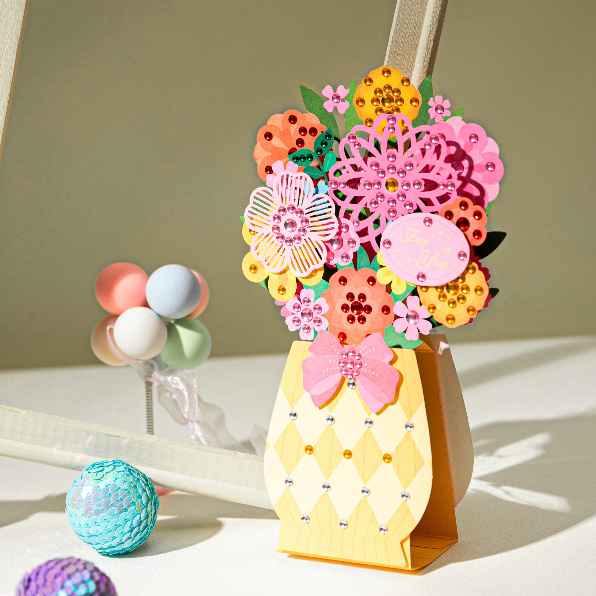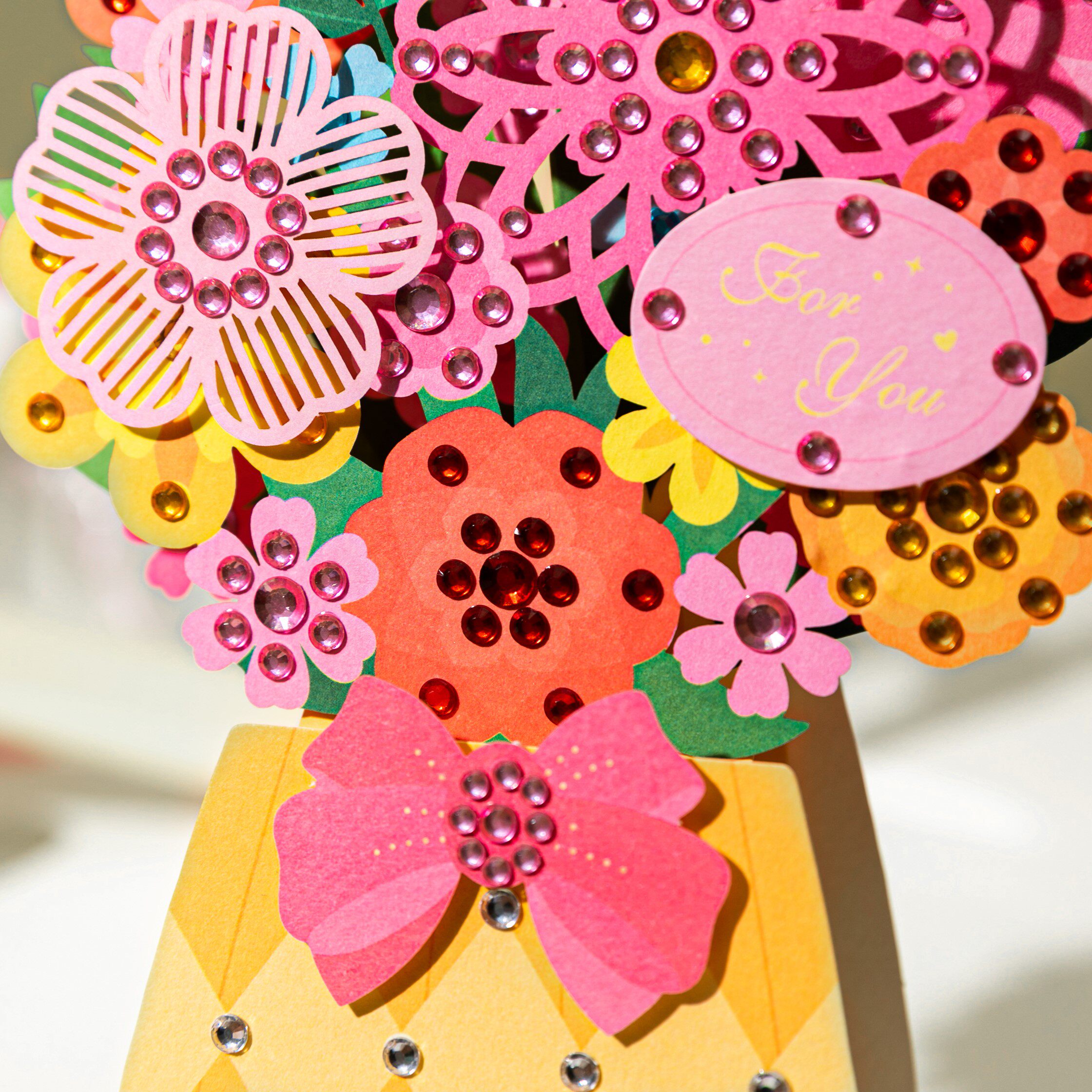 Creative DIY stickable rhinestone three-dimensional decorative vase greeting card Teacher's Day thank you teacher gift universal card