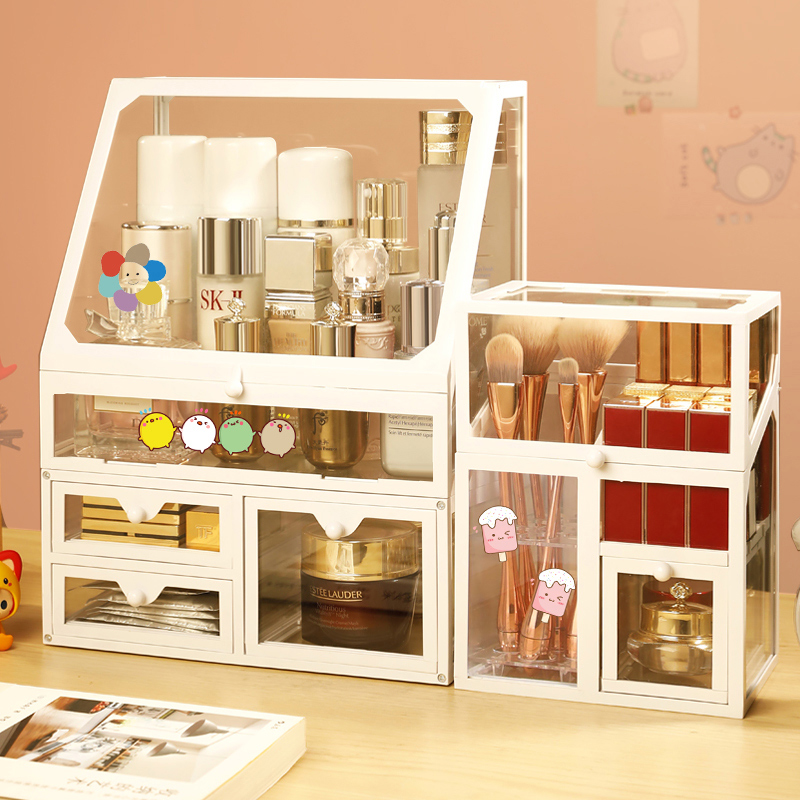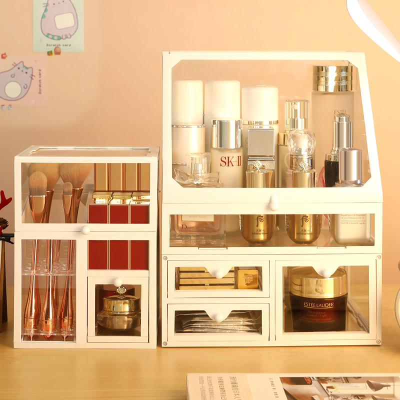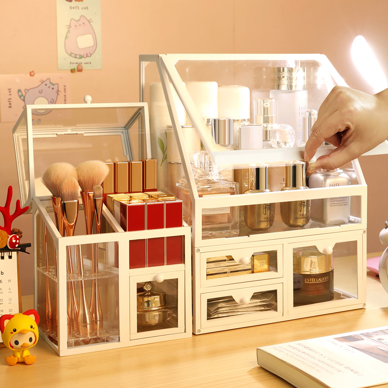 Glass Cosmetics Storage Box Dustproof Desktop Lipstick Skin Care Products Perfume Jewelry Dressing Table Shelf Organizer