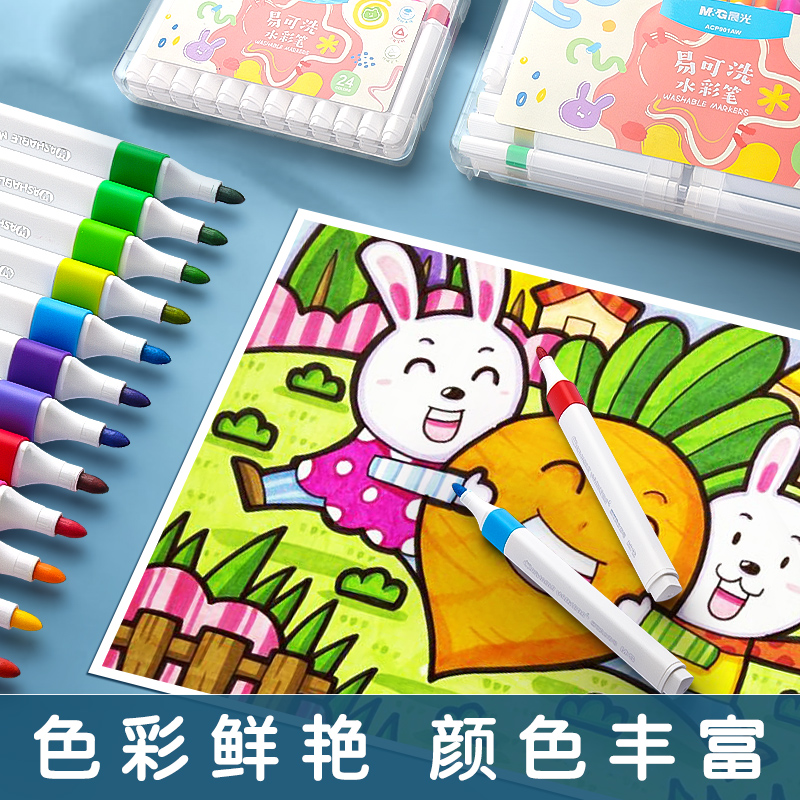 Morning Light Water Colour Pen Children washable Non-toxic Coloured Pens Elementary School Students Special Water Soluble Nursery Color Pen 24 Color Drawing Pen Easy Washable 12 Color Soft Head Painting 48 Color Color 36 Color Painted-Taoba