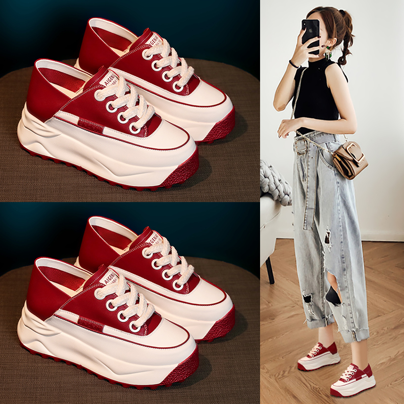 Small white shoes in 2022 new summer leather sports sneakers thick soles increase two women's shoes