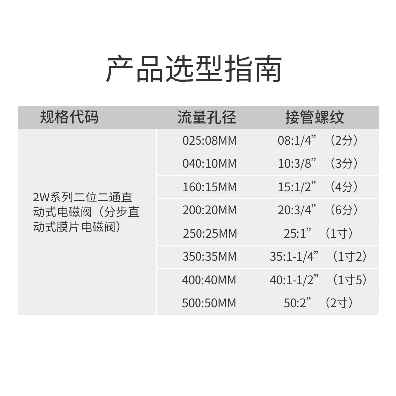 2W025-08 2W025-08 AC220V (2 minute thread) 2W025-08 DC24V (2 minute thread) 2W040-10 AC220V (3 minute screw
