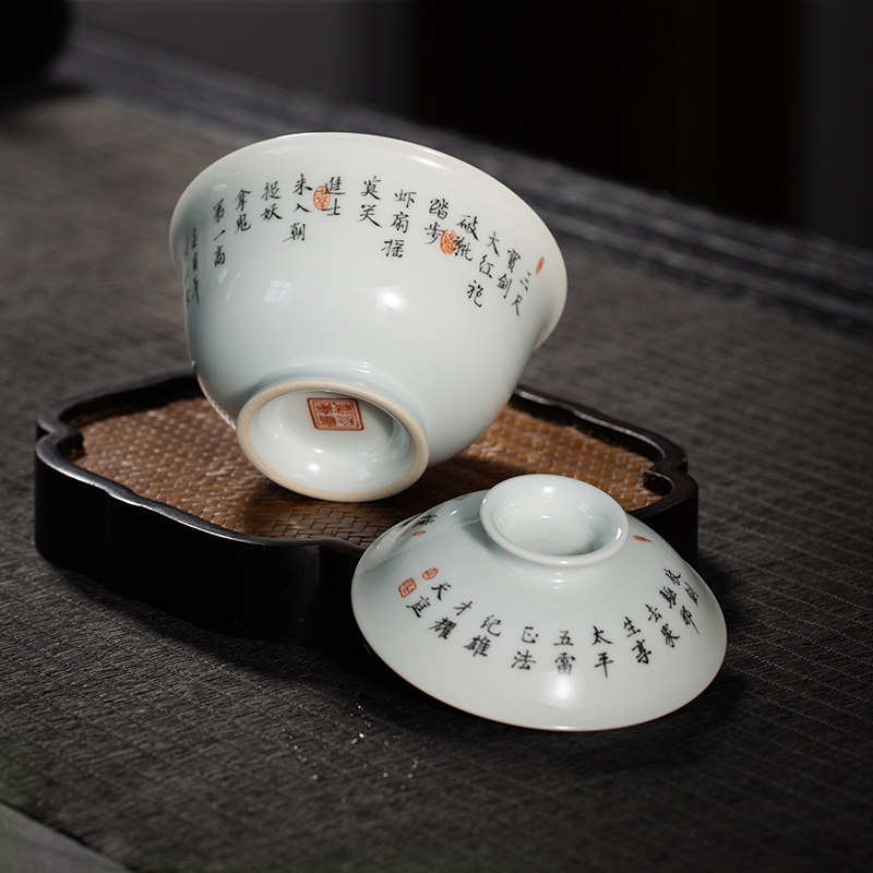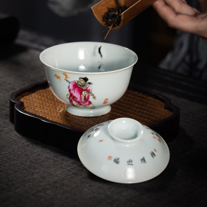 The Lord Kilns Treasured Elegant Play of Jingdezhen Artisanal Ceramic Cover Bowl Tea Tea Tea Tea Cup Fu Greet the Ancient Hand Painting Art