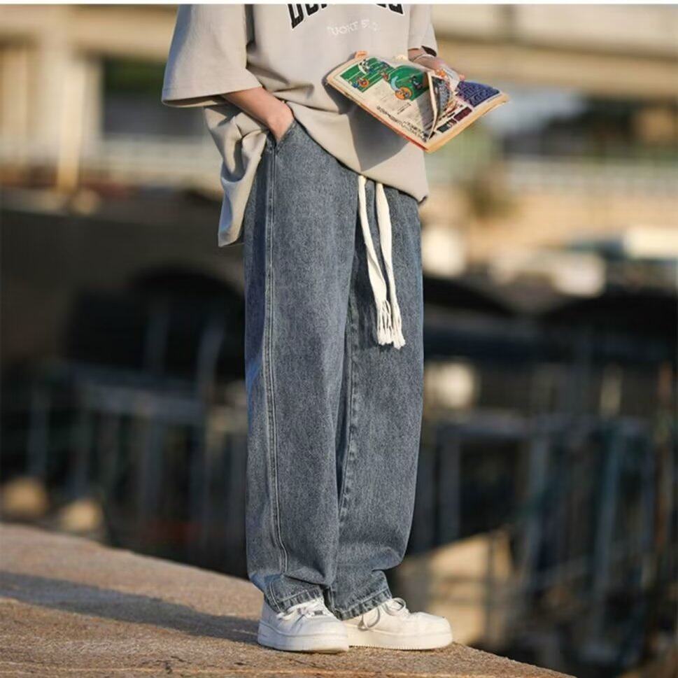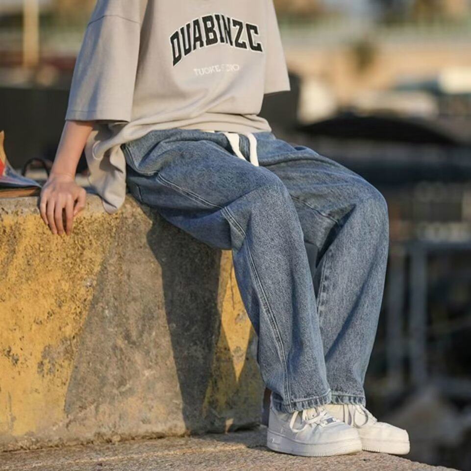 American design niche jeans men's summer thin section tide brand large size pants straight loose loose wide leg casual pants