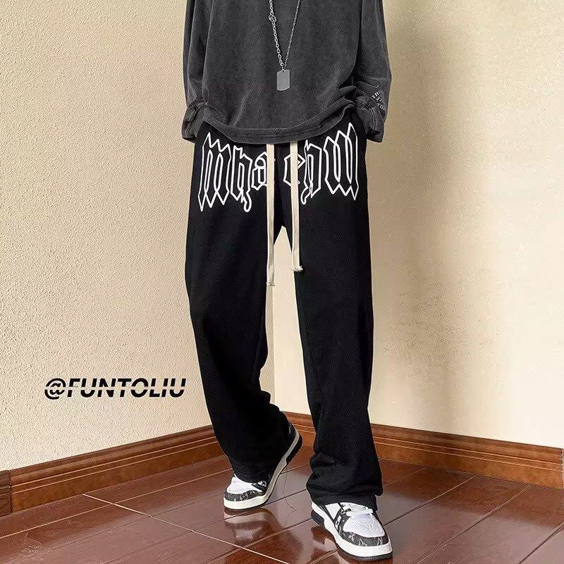 American pants men's autumn high street ins tide brand ruffian handsome fried street thin section loose straight wide-leg mopping pants
