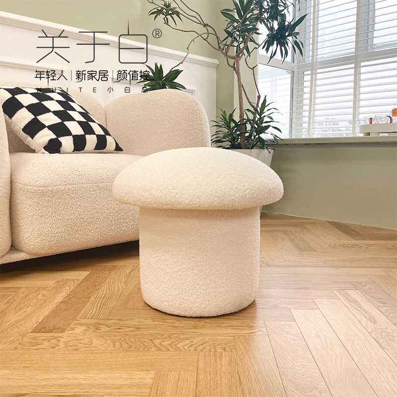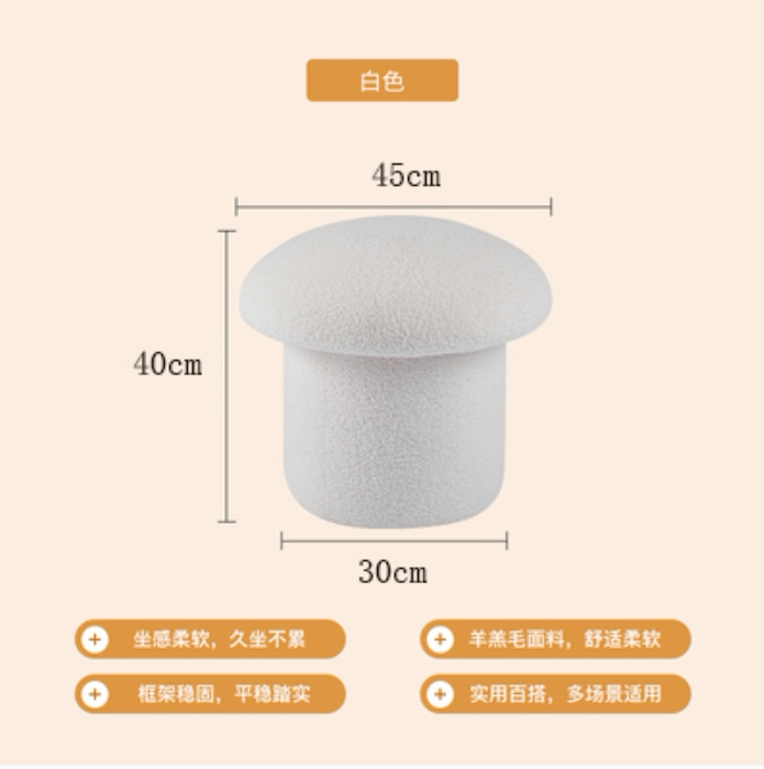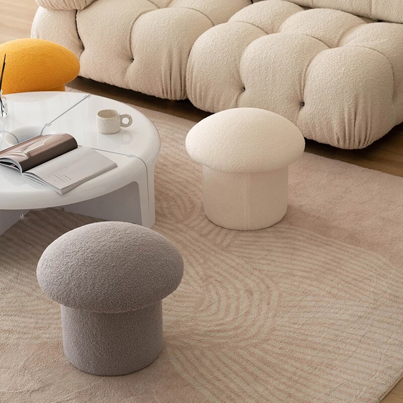 Creative net red mushroom low stool light luxury lamb velvet sofa stool home shoe changing stool simple living room adult small stool