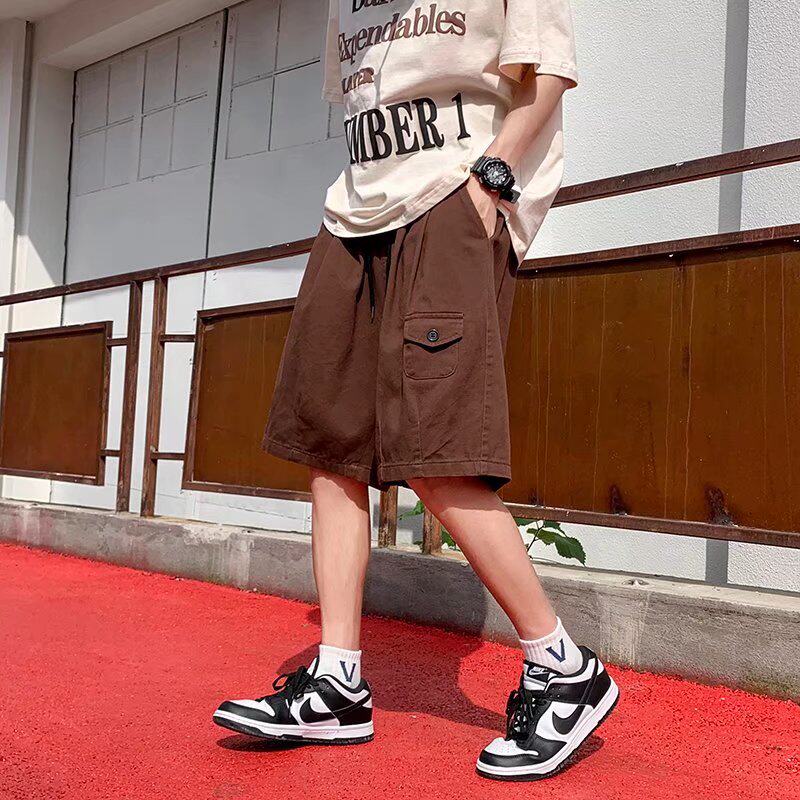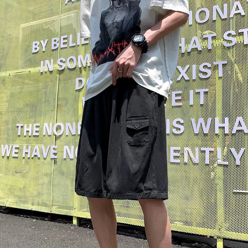 2022 Hong Kong style Korean ins trend retro Japanese all-match loose straight overalls casual pants shorts boys