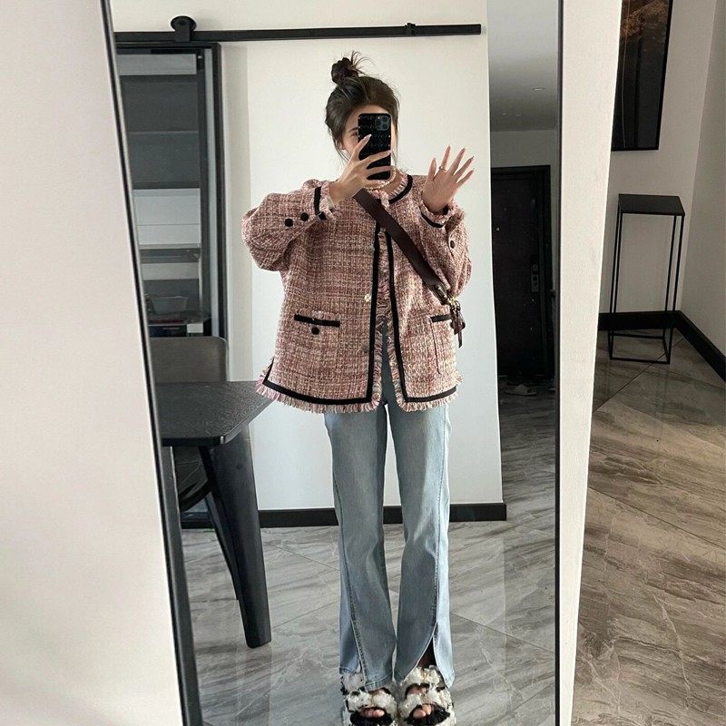Short coat women's small fragrance style 2022 spring and autumn autumn new tops early autumn Korean style mid-length high-end cardigan