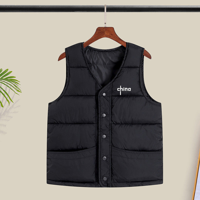 Large pocket wear 80-140 catties medium and large size warm down cotton vest liner snap button waistcoat vest men's winter vest