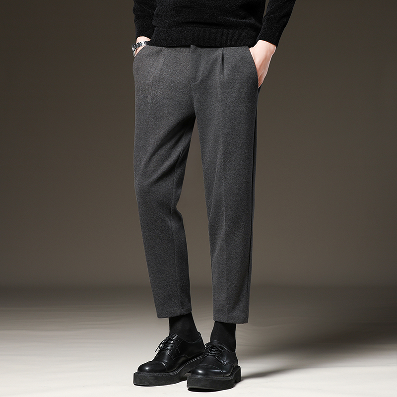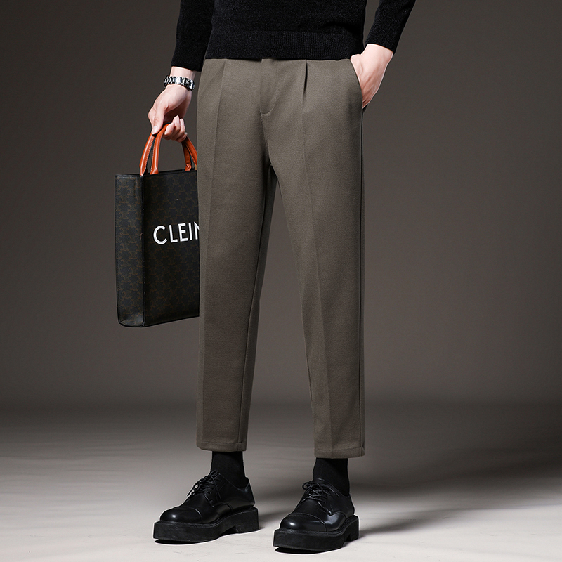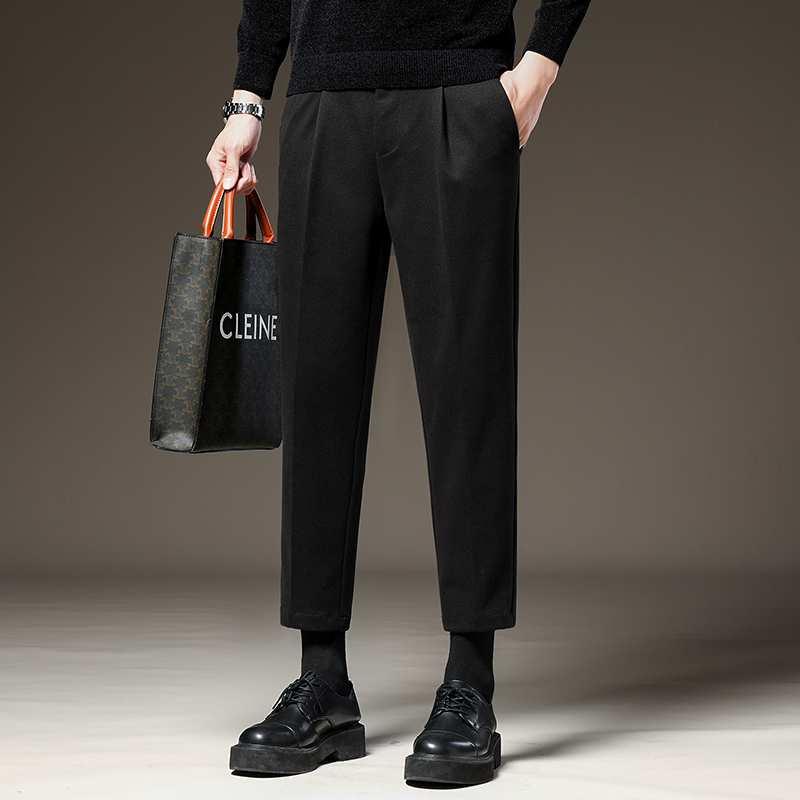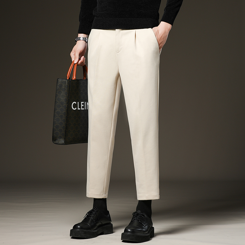 Luo Mengqiu Winter Mao's pants men's sashimi pants Han version casual straight cylinder plus suede 90% Little Western pants-Taobao
