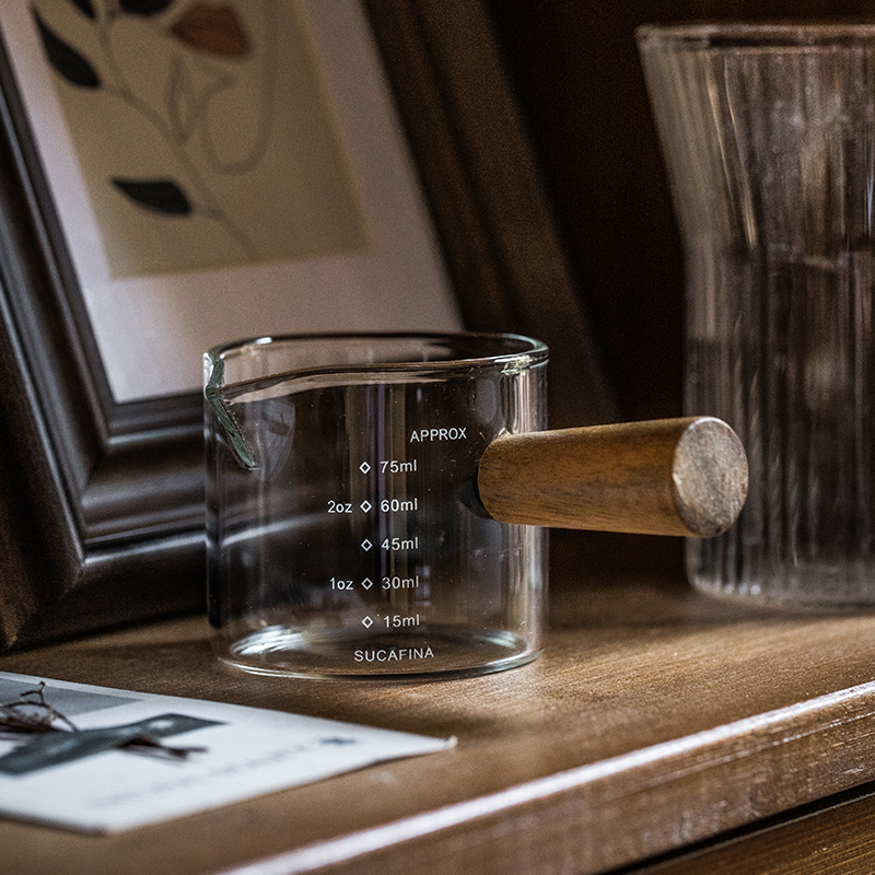 Alley tail [small and beauty ~ ins glass milk flush] Japanese style wood handle with scale coffee small amount of cup oz cup-Taobao