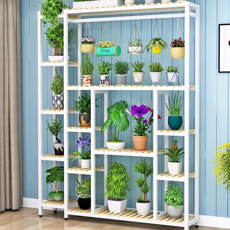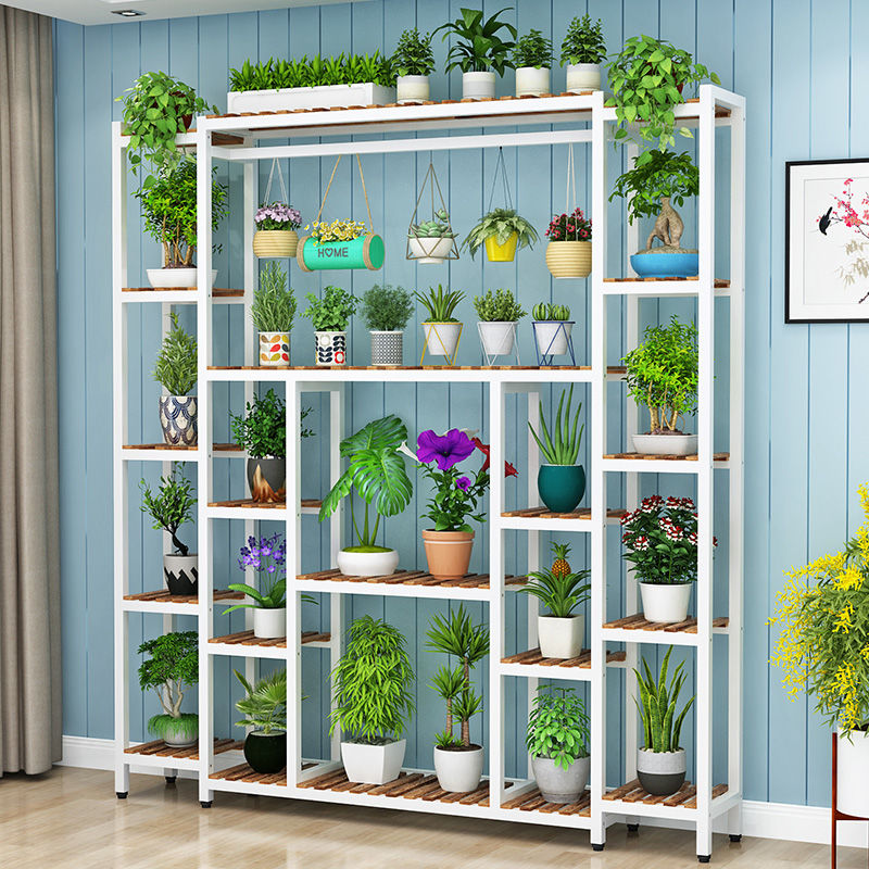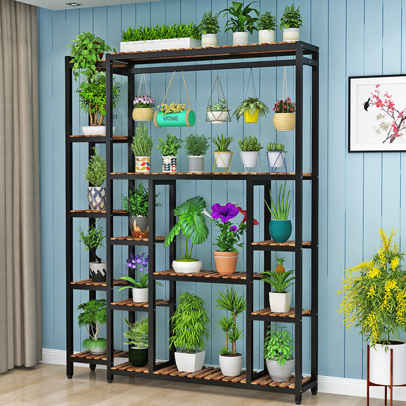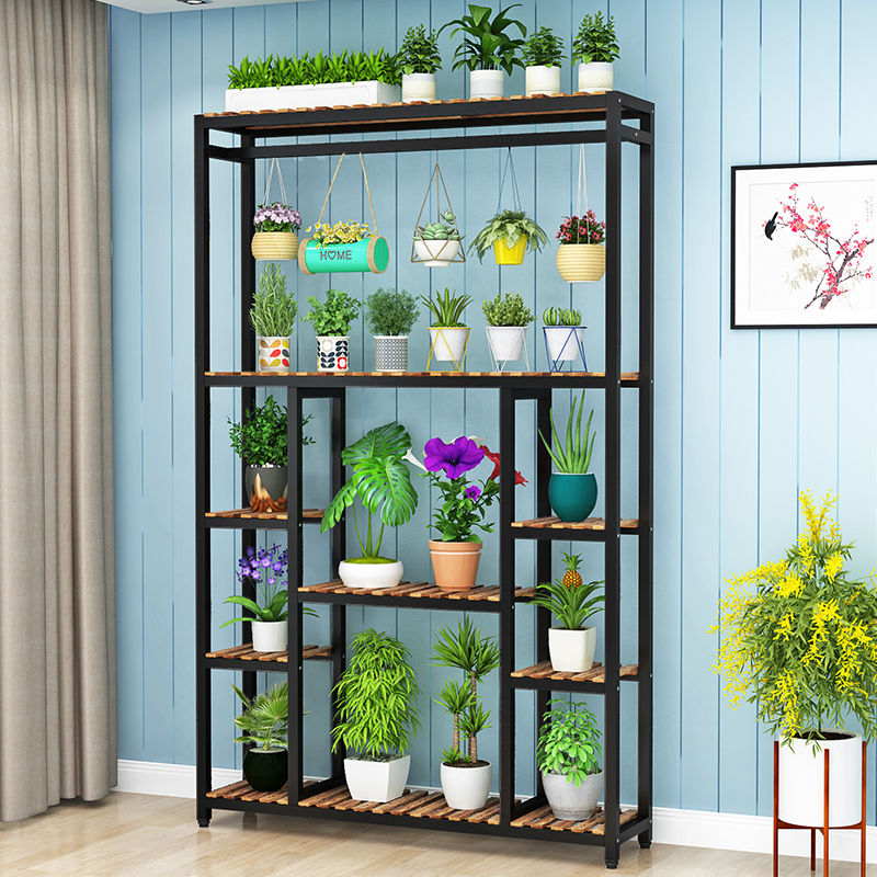 Xinjiang flower stand balcony wrought iron multi-layer hanging orchid solid wood carbonized green dill hanging basket succulent floor living room flower shop