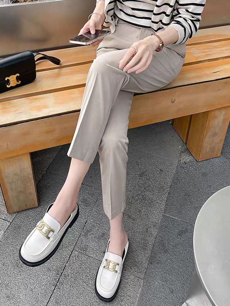 Suit pants women's spring and autumn style nine-point trousers mid-waist pants large size women's pants summer apricot slim professional cigarette pants