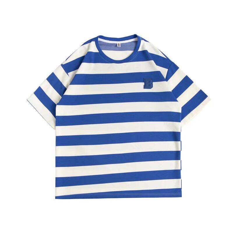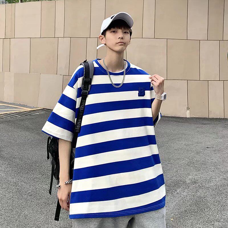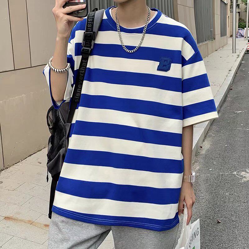2022 summer new men's T-shirt loose trendy brand round neck ins Korean version trendy stripes all-match half-sleeved short-sleeved