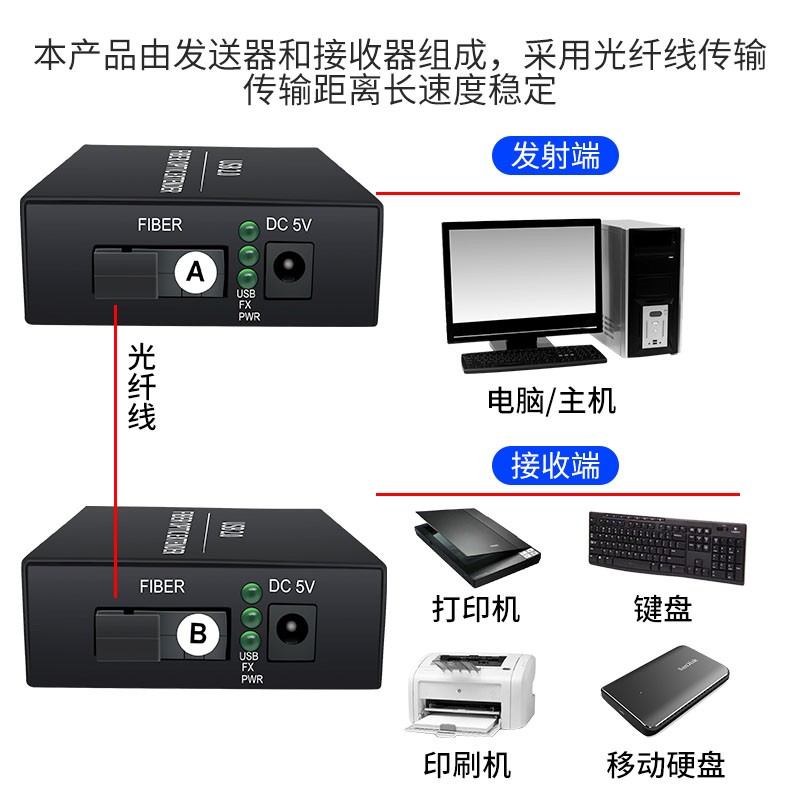 USB2 0 Optical Fiber Transceiver Extender Transfer 10KM Signal Keywords U Disk Printer Single Fiber Mode