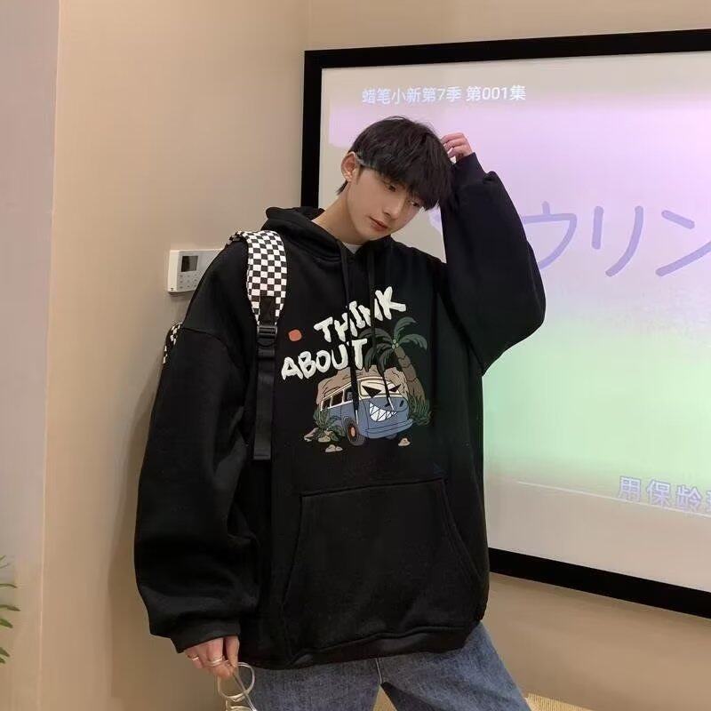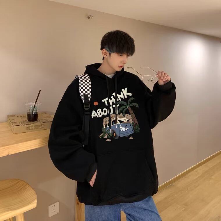 American woven rope hooded sweatshirt men's autumn tide ins loose clothes tide brand retro sweater