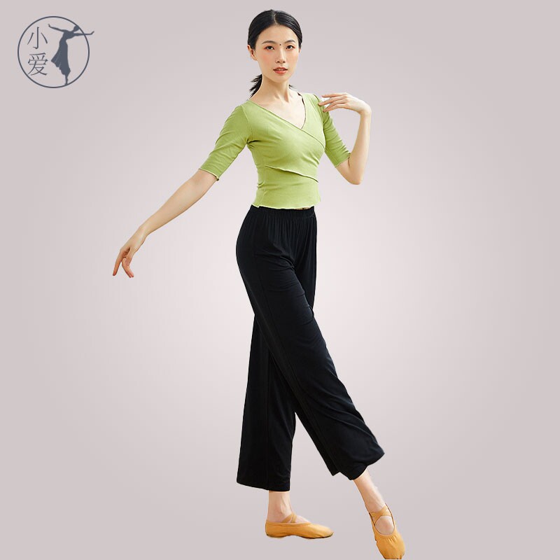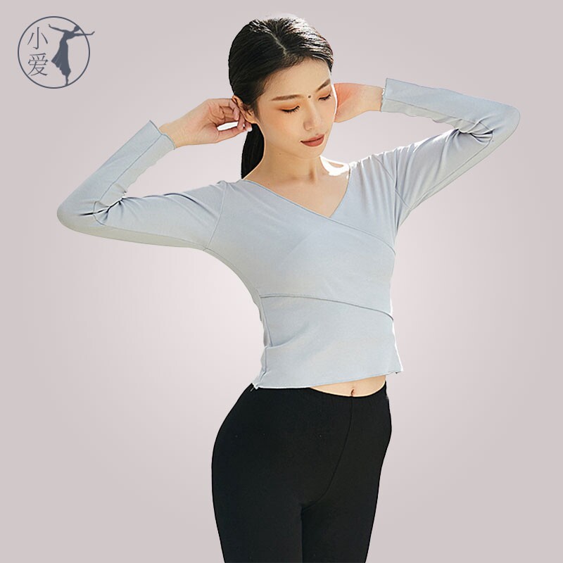 Modern dance practice clothing classical body rhythm body suit Chinese dance top dance art test training black long sleeves