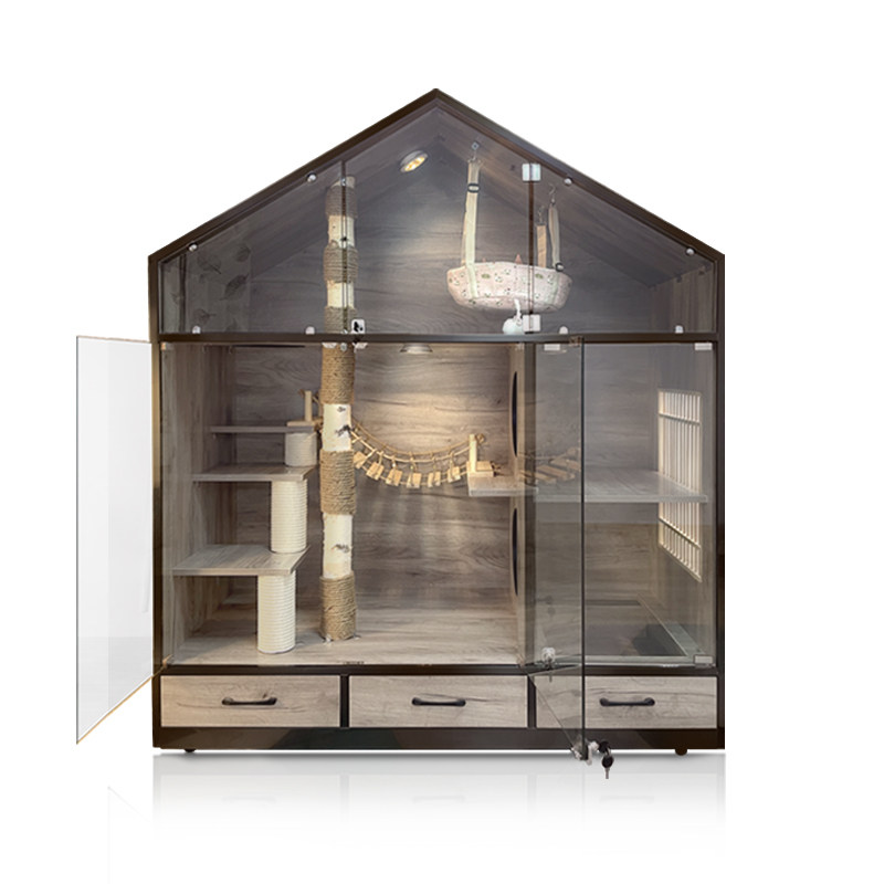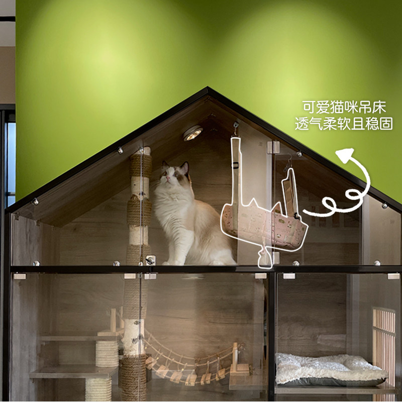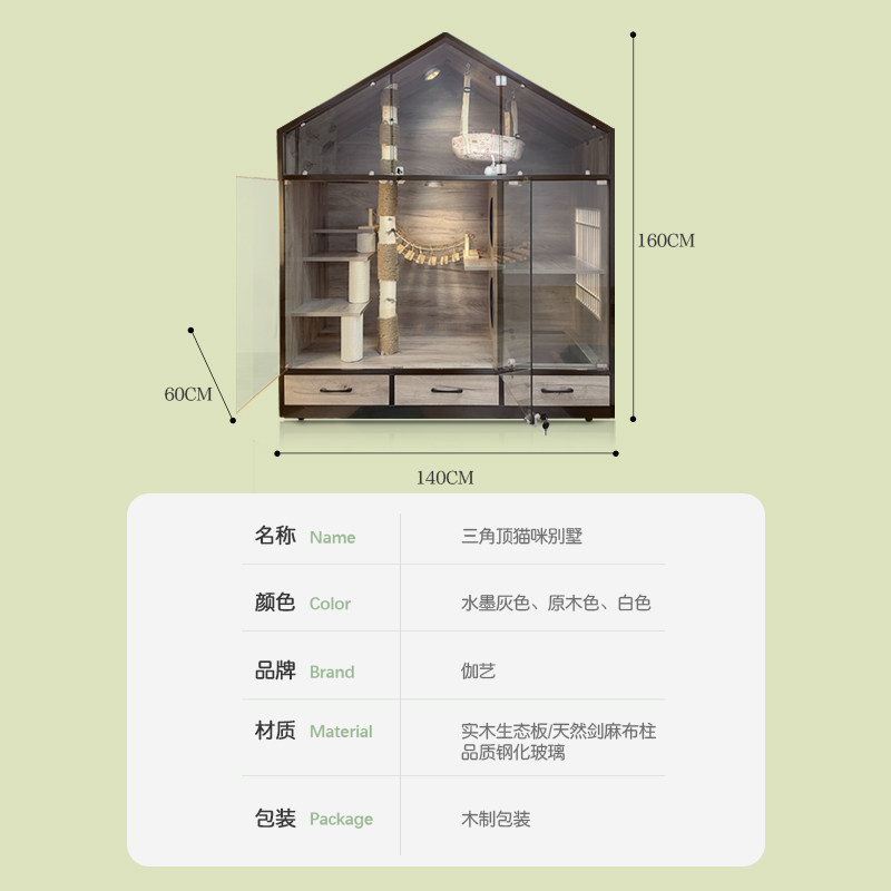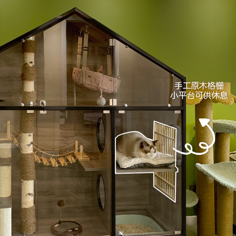 Customized panoramic cat villa solid wood household cat cage oversized free space indoor cat luxury cabinet cat house cat litter