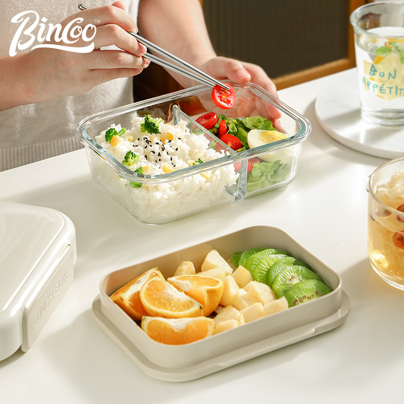 Bincoo glass lunch box office workers can microwave heating pupils special lunch box separated insulation lunch box