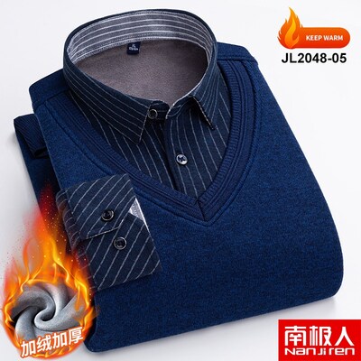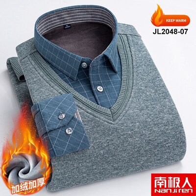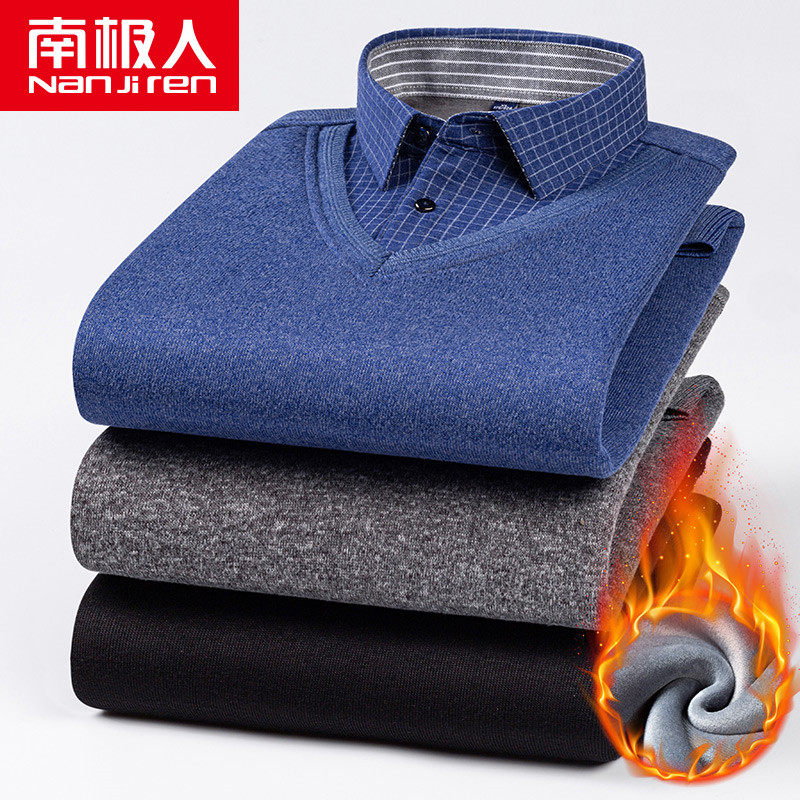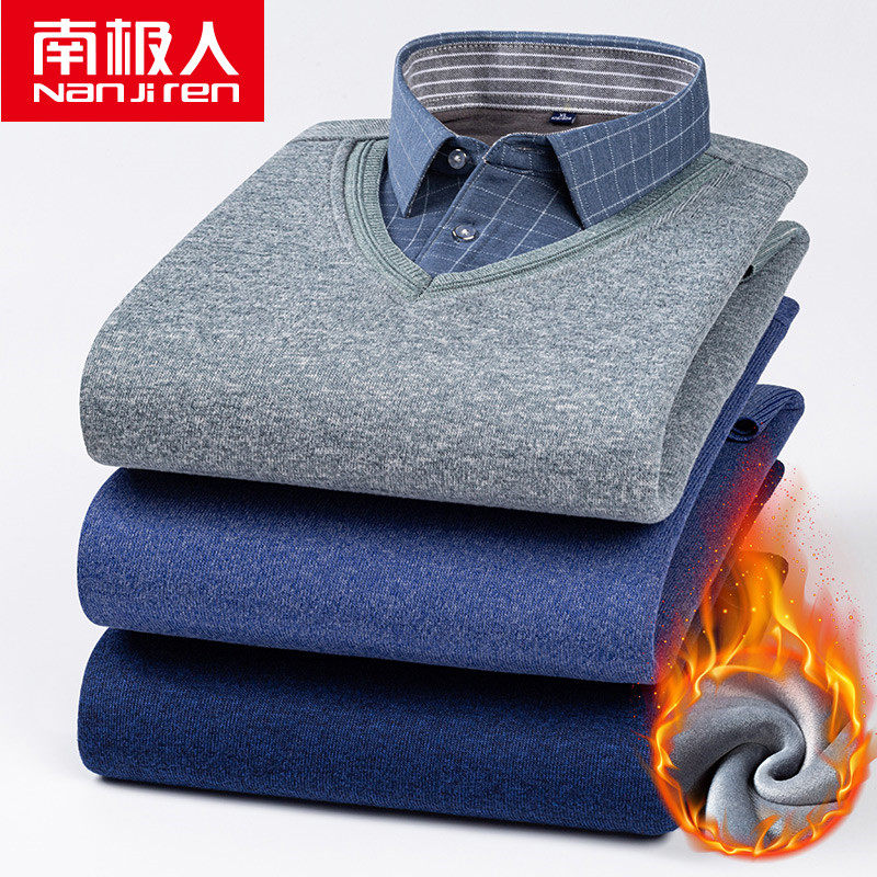 2022 New Arrival Men's Thermal Underwear Plus Velvet Thickened Loose Fake Two-Piece Young Men's Dad Collar Tops
