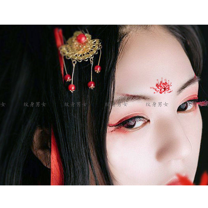 Ancient wind on the other side of the sea with flowers and red lotus flowers in the red lotus flower sexy face Man Pearl Sharhua eyebrow with an eye corner sticker-Taobao