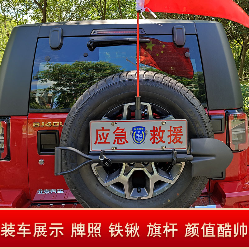 Off-road vehicle chess pole license plate shovel holder