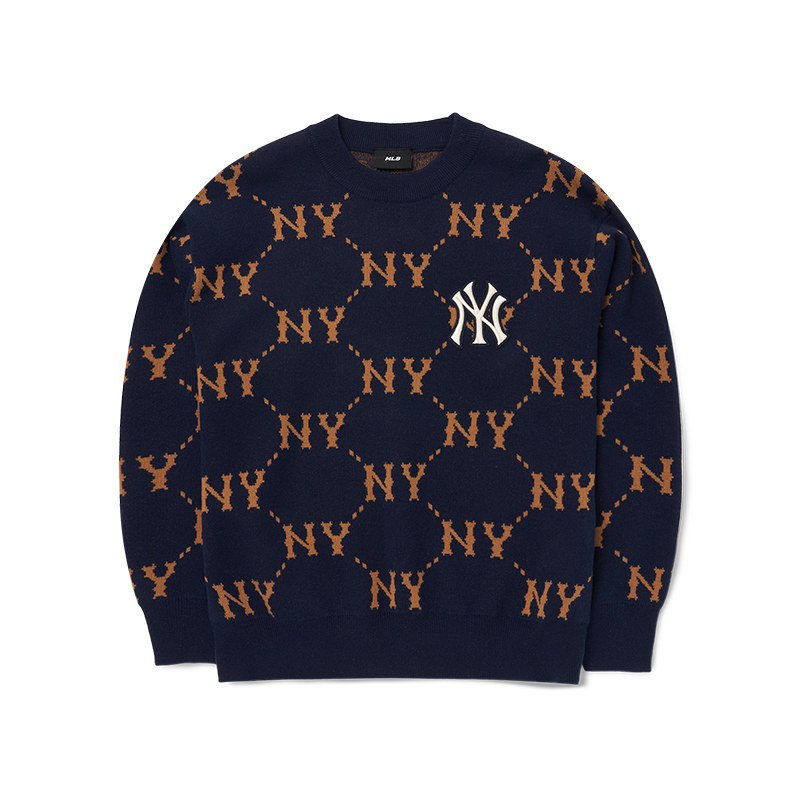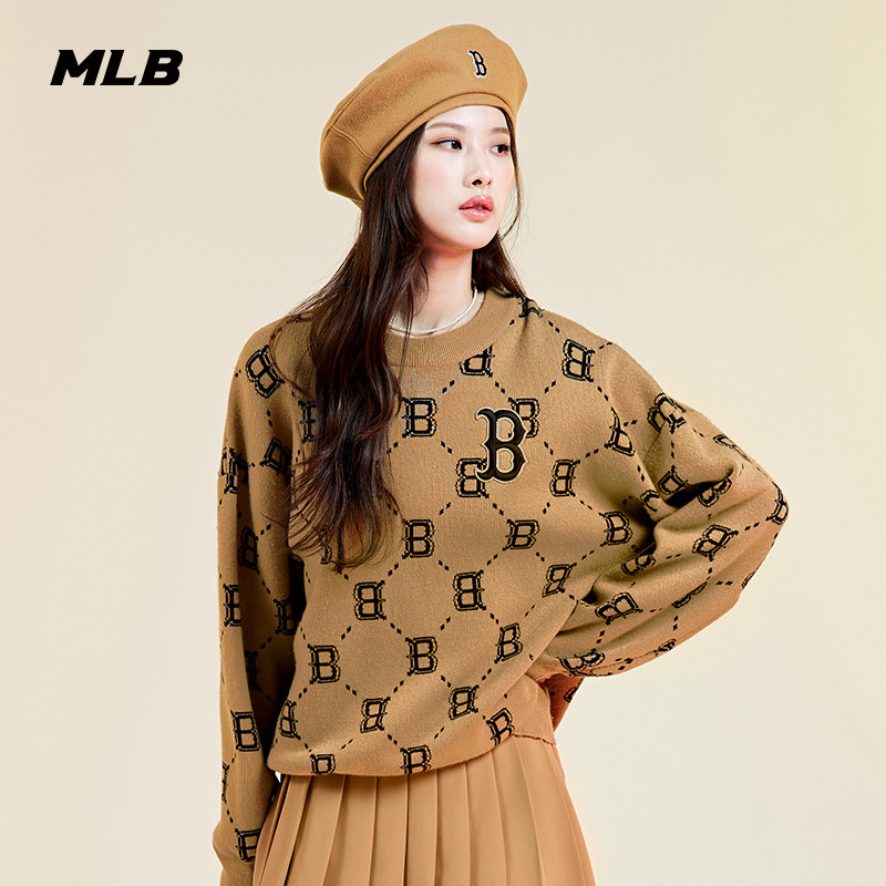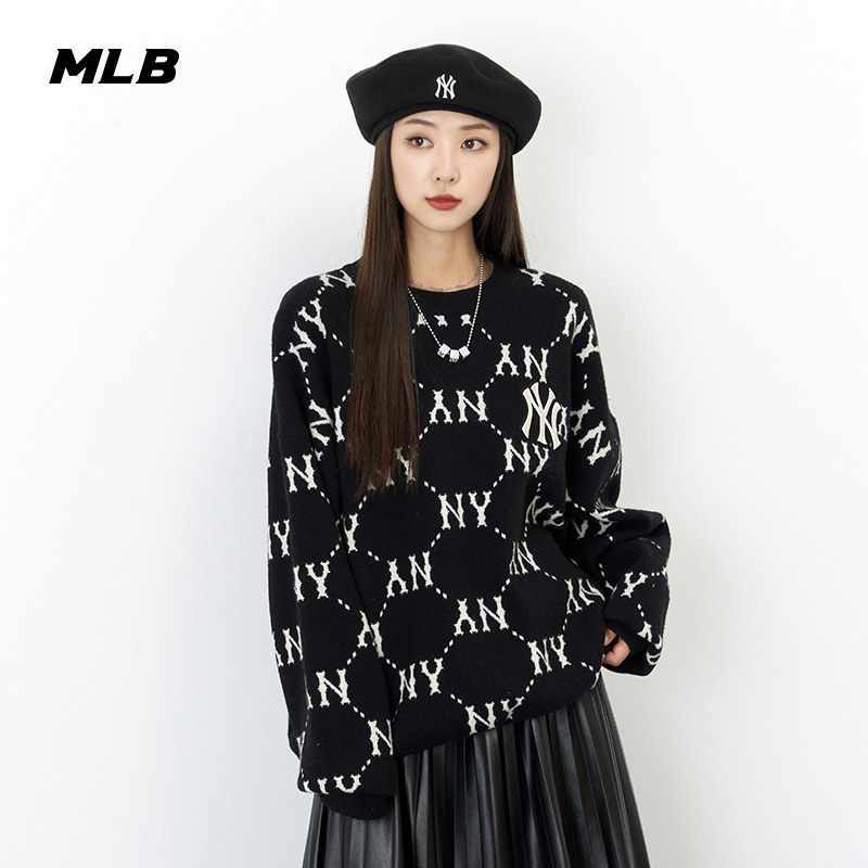MLB Official Men's and Women's Couple Diamond Old Flowers Knitted Sweatshirt Loose Stars Same 23 Winter New KPM02-Taobao