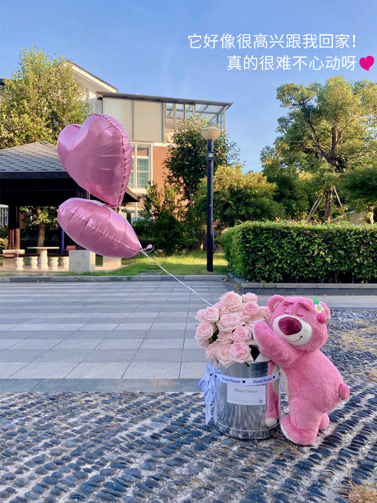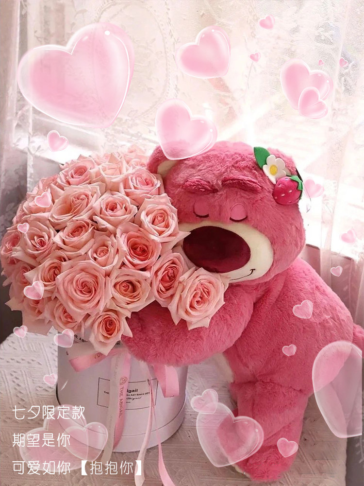 (With you day and night) 33 pink lychees, balloons, strawberry bears (hug you) 33 roselle roses (not only Qixi Festival) 33 pink lychees, strawberry papa bears (strawberry flavored hugs)