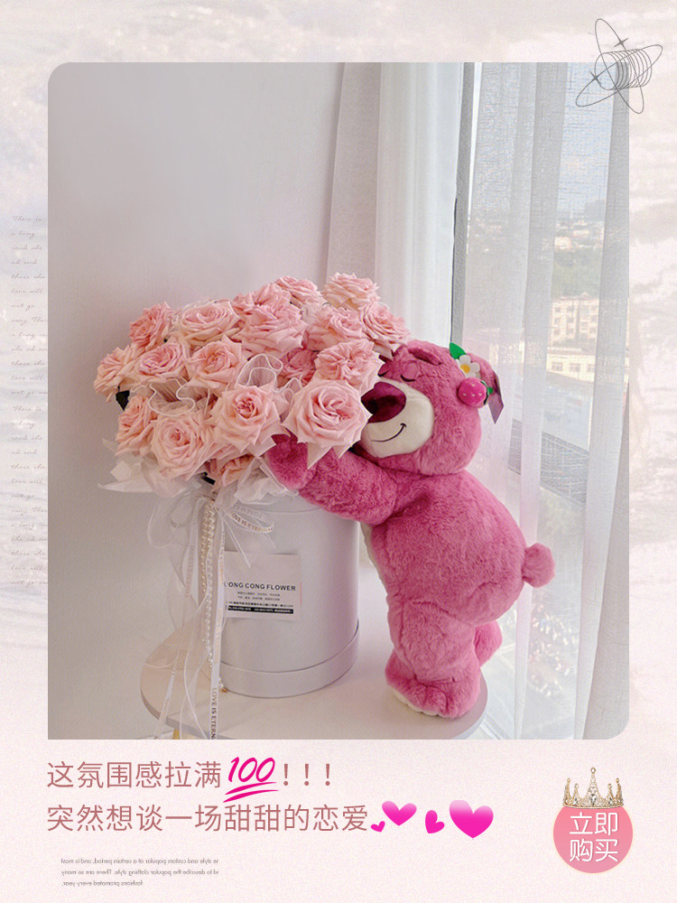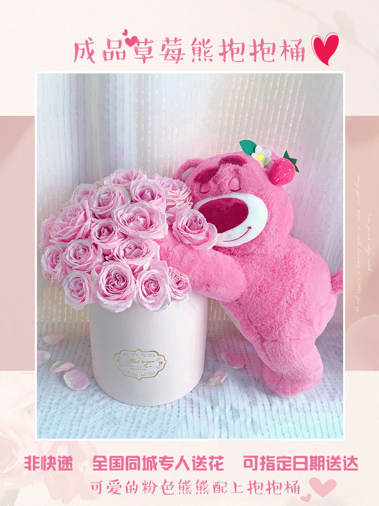 Strawberry Papa Bear Flower Hug Bucket Flower Bouquet for Girlfriend Nanjing Shanghai National City Express Delivery Store