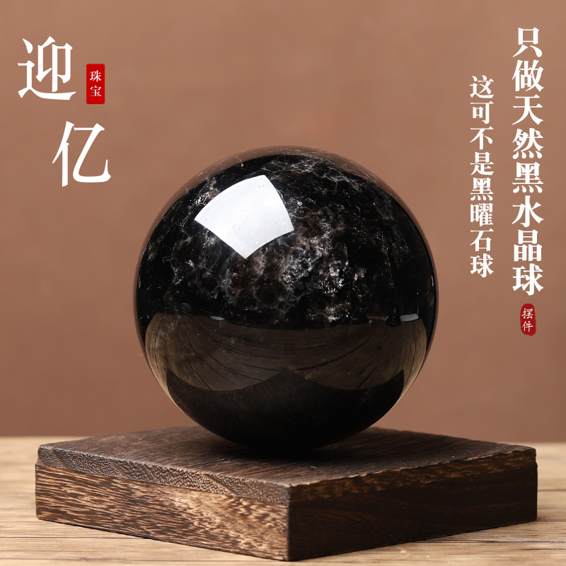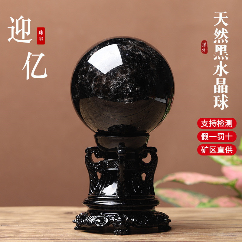 Welcome 100 million natural black water crystal ball pendulum with five lines of water original stone's home bedroom office ornamental opening gifts-Taobao